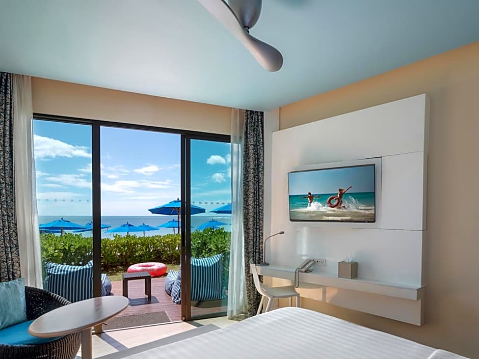 Suchen Sie ein gemütliches Zimmer mit Aussicht? Das Deluxe-Zimmer mit 1 King-Bett und Meerblick im OZO Chaweng Samui ist die perfekte Wahl. Wachen Sie zum Klang der Wellen auf und genießen Sie atemberaubende Ausblicke auf das Meer direkt von Ihrem Zimmer aus. Mit einem komfortablen King-Size-Bett bietet dieses Zimmer Platz für 2 Erwachsene und 1 Kind und ist damit ideal für eine kleine Familie oder einen romantischen Kurzurlaub. Entspannen Sie auf Ihrem privaten Balkon und nehmen Sie die beeindruckende Szenerie in sich auf, die nur ein Zimmer am Strand bieten kann.